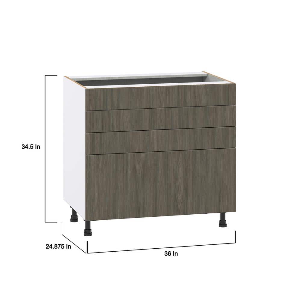 J COLLECTION Medora textured 36 in. W x 24 in. D x 34.5 in. H in Slab Assembled Base Kitchen Cabinet For Cooktop with 4 Drawers