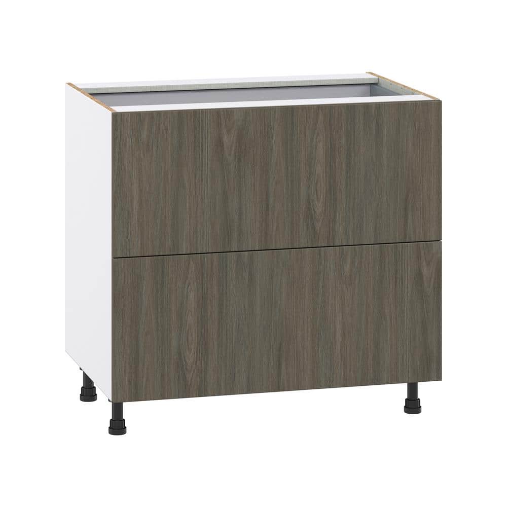 Transform your kitchen with the Medora Textured Walnut Kitchen Base Cabinet by J COLLECTION, featuring a sleek, frameless design for modern appeal. This fully-assembled cabinet offers exceptional durability, with a scratch and moisture-resistant surface and soft closing mechanisms for smooth operation. Enhance organization with its deep, spacious drawers and adjustable shelving, making it an indispensable part of a functional and stylish kitchen layout.