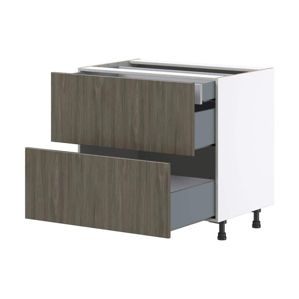 J COLLECTION Medora Textured 36 in. W x 34.5 in. H x 24 in. D in Slab Walnut Assembled Base Kitchen Cabinet with Inner Drawer