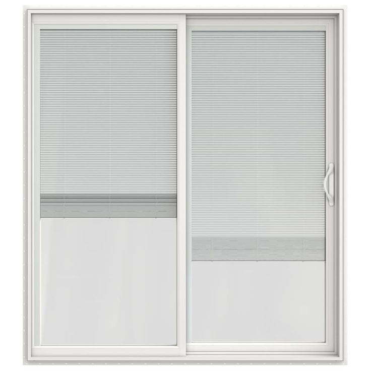 This JELD-WEN patio door utilizes fusion-welded frames for increased strength and stability. The extruded vinyl material is top-quality and does not chip, peel, or fade, while also being resistant to mildew and condensation. The SunStable Low-E insulating glass provides year-round comfort by blocking out the sun's heat and UV rays in the summer, and reflecting heat back in during the winter. The internal blinds are sealed between two panes of insulated tempered glass and do not require dusting. Both the interior and exterior of the patio door are white, matching with the included handles. The door slides open to the right from inside the home, and a 2-point locking mechanism is included for added security. Please note that the screen is sold separately. This product is backed by a lifetime limited warranty.