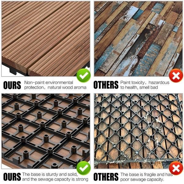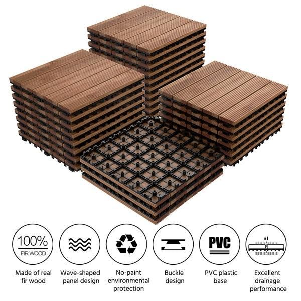 27pcs Patio Pavers Wood Flooring Tiles,Interlocking Wood Tiles Indoor & Outdoor,12 x 12"