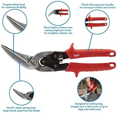Milwaukee Left and Right Offset Aviation Snips 2‑Pack, Forged Stainless Blades