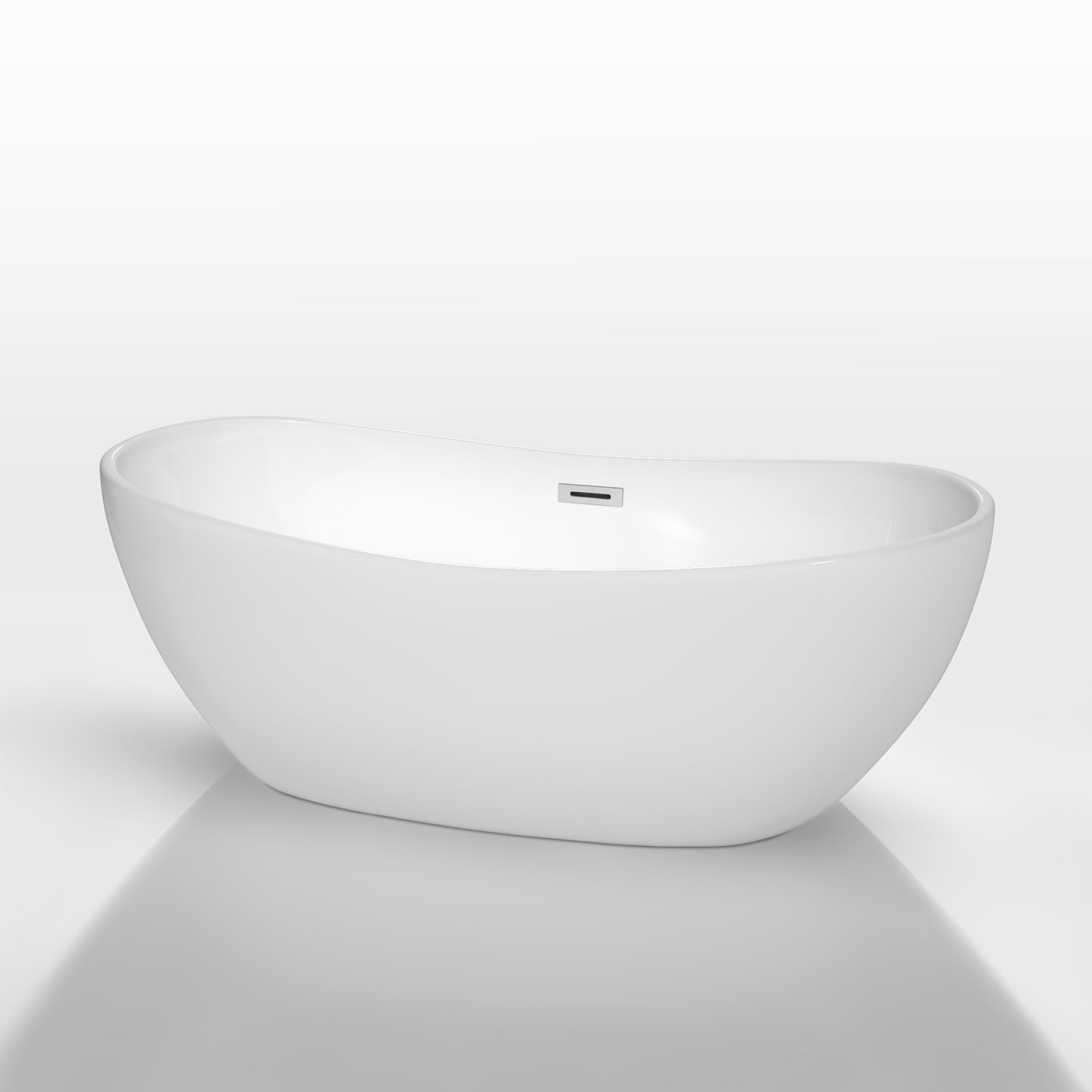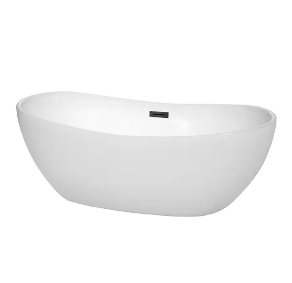 Sculptural and inviting, the Rebecca 65-inch freestanding soaking tub delivers deep, spa-like comfort in durable acrylic. Its warm-to-the-touch surface and contoured oval shape offer immersive relaxation, while the matte black overflow and drain trim add a modern accent.