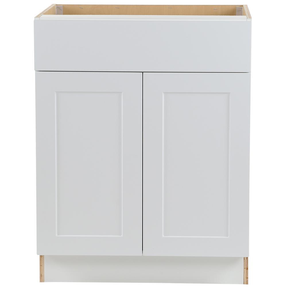 Giving you that transitional/modern look that will be sure to evoke a chic presentation, the Cambridge 24.5 in. W assembled base cabinet is beautifully crafted with a slab drawer front and 2 shaker style RTF doors. The Cambridge collection offers a brilliant, solid white complexion on an all plywood cabinet with a natural wood interior that is sure to add a touch of brilliance to any room. Including a full overlay door style, the base cabinet is fully assembled making it easy for you to build the kitchen, bathroom, laundry room or office of your dreams.