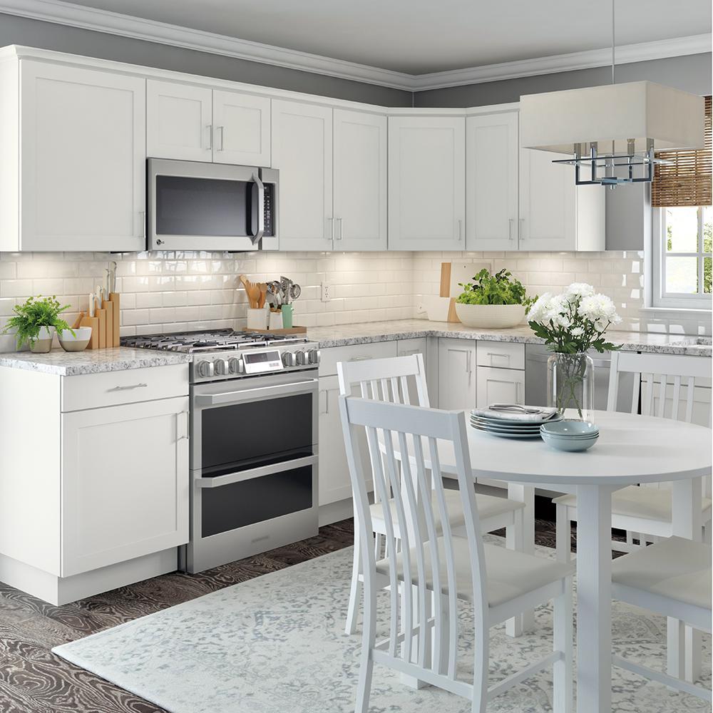 • Shaker style white RTF doors and 1 slab drawer for a clean/transitional look