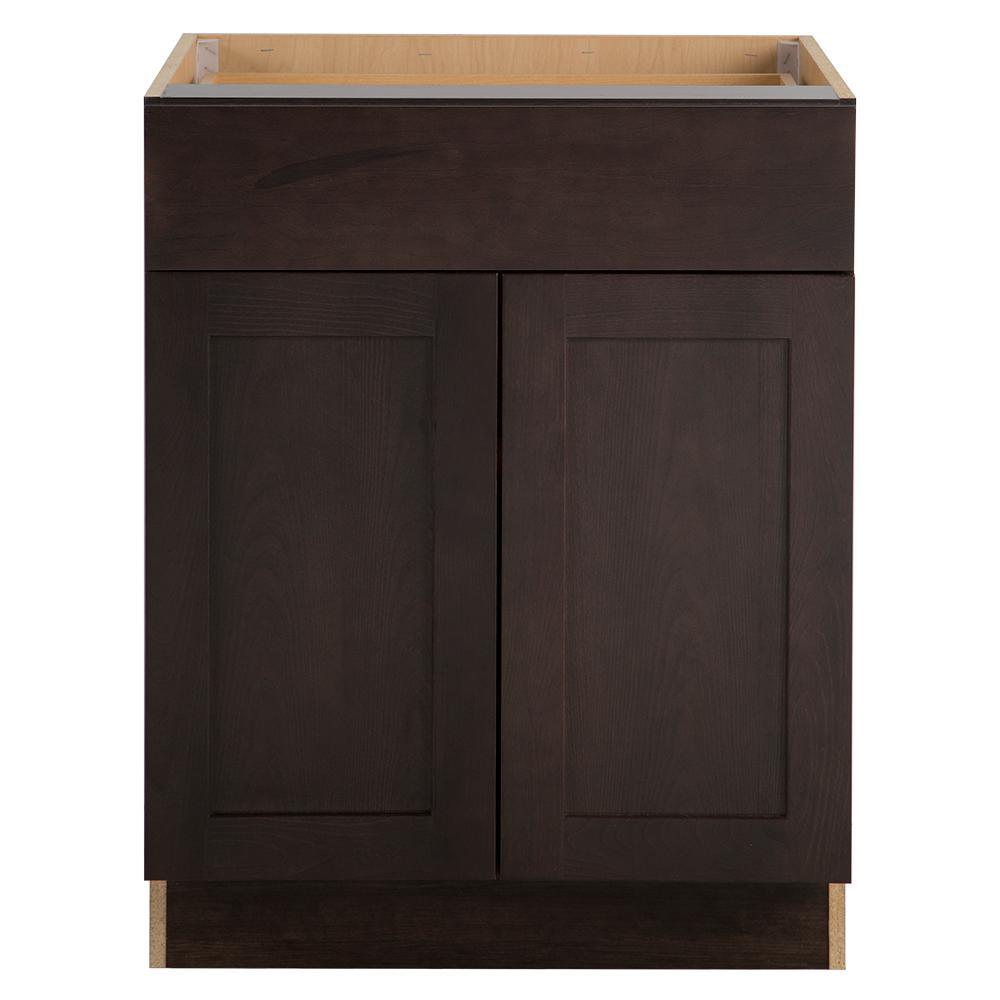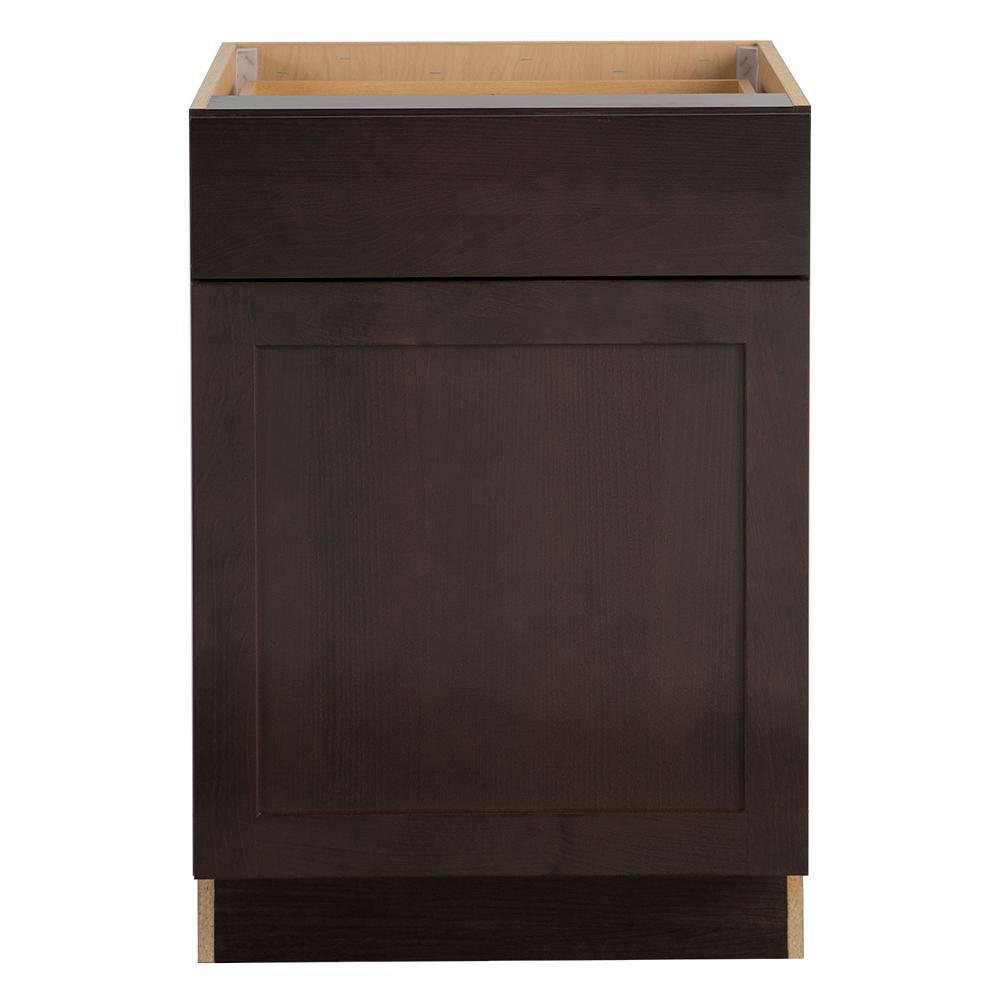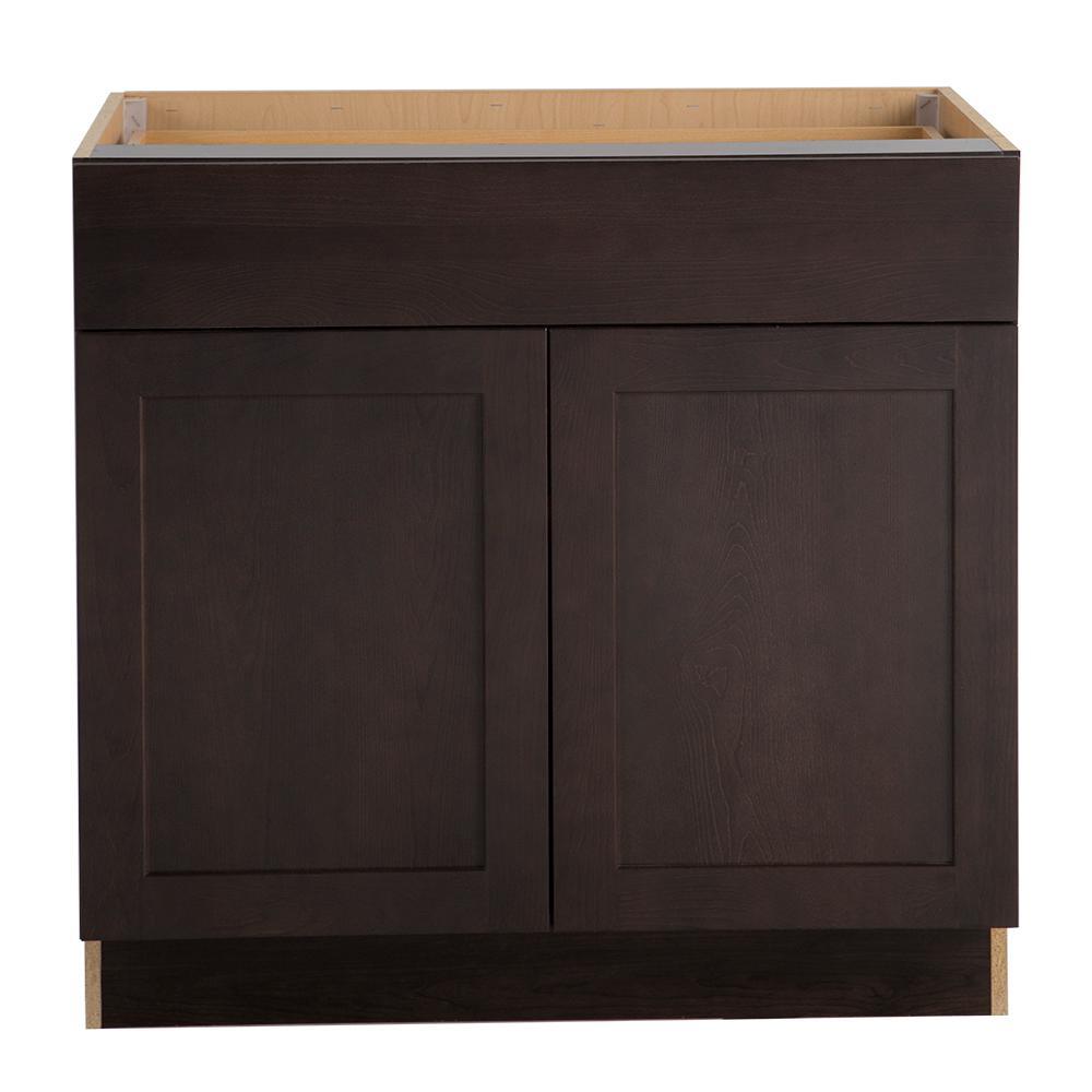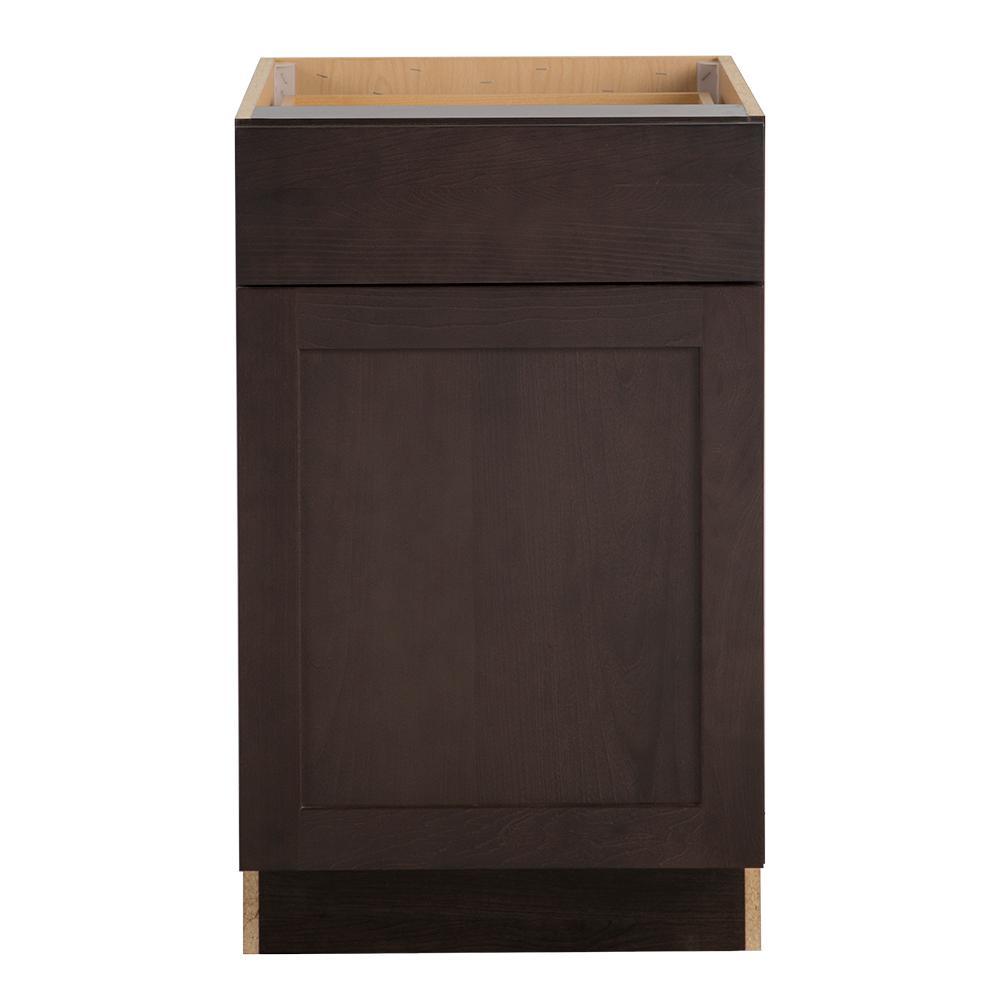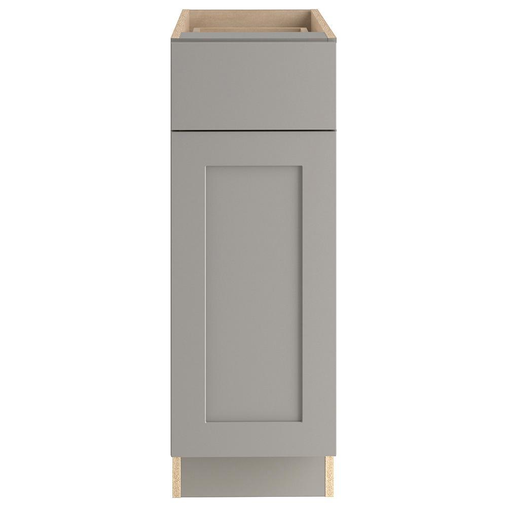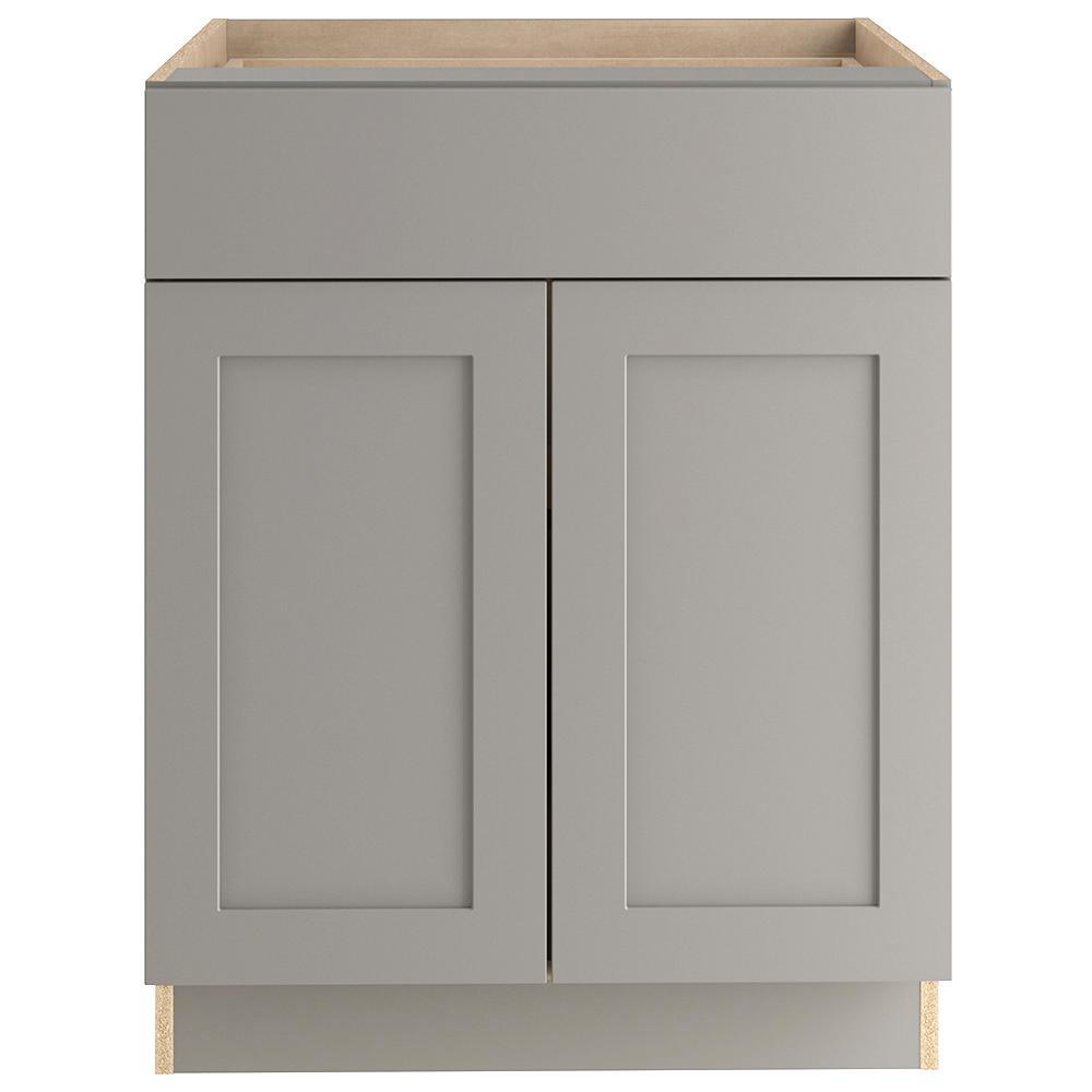 The Edson 36 in. W assembled base cabinet in Gray will withstand the test of time and is beautifully crafted with a slab drawer front and 2 shaker style doors. The Edson collections Gray color offers a taupe-gray finish and laminated natural maple interior that is sure to produce a serene atmosphere. Including a full overlay door style, the base cabinet is fully assembled making it easy for you to build the kitchen, bathroom, laundry room, or office of your dreams.