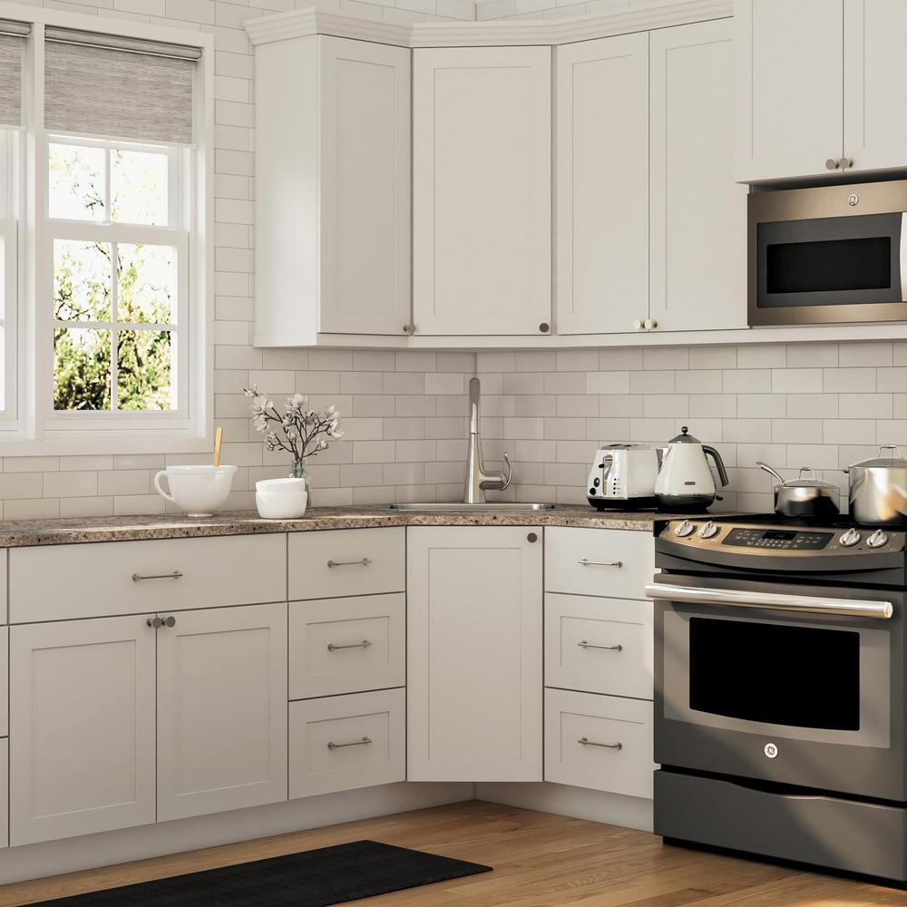Give yourself that transitional look that will produce a chic presentation with the Cambridge 36 in. W ready-to-assemble corner sink base cabinet in White. This cabinet is beautifully crafted with a shaker style RTF door. The Cambridge collection offers a brilliant, solid white complexion on an all plywood cabinet with a natural wood interior that will add a touch of brilliance to any room. Including a full overlay door style, the corner sink base cabinet will make it easy for you to build the kitchen, bathroom, laundry room or office of your dreams.