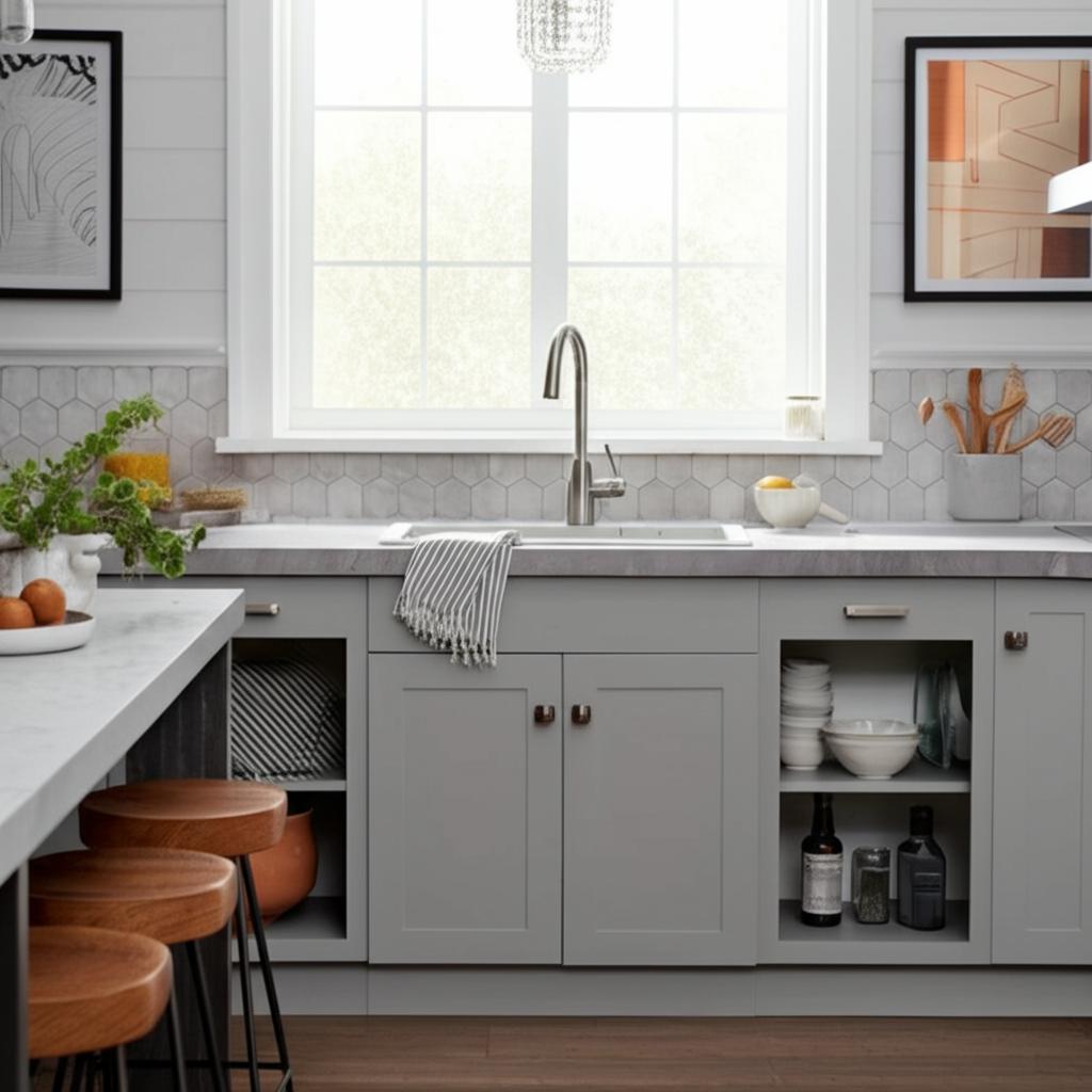 Transform your kitchen or bathroom with the Hampton Bay Cambridge Gray Shaker Base Cabinet. Its taupe-gray finish and shaker-style design bring a refined elegance to any space. Pair it with natural wood tones or vibrant accents for a harmonious look. This cabinet is not just a storage solution but a statement piece that enhances the aesthetic of your home.
