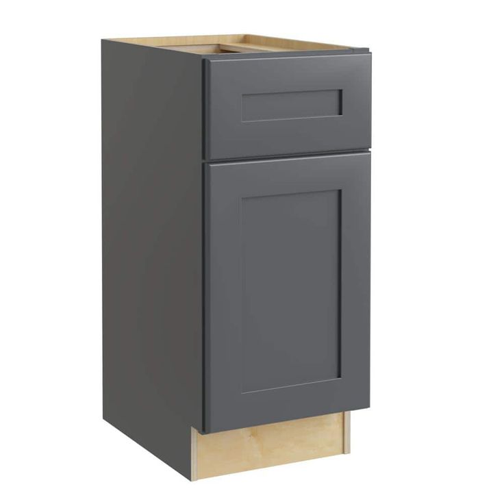 Transform your kitchen space with the Home Decorators Collection's Newport Base Cabinet in Deep Onyx. This cabinet features classic Shaker-style doors, full extension soft-close drawers, and solid plywood construction for unmatched durability. Its modern, bold gray finish complements any kitchen design.