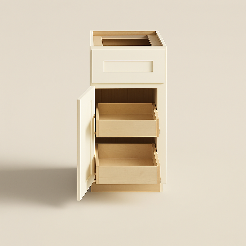 The Newport Base Kitchen Cabinet in blended cream is a masterpiece of design and functionality, perfect for elevating your kitchen's aesthetic. Its shaker-inspired doors and multi-step painted finish exude sophistication, while the durable plywood construction ensures lasting quality. Pair it with brushed nickel hardware for a modern touch, or opt for antique brass for a classic vibe. This cabinet is not just a storage solution; it's a statement of refined taste and luxurious living.