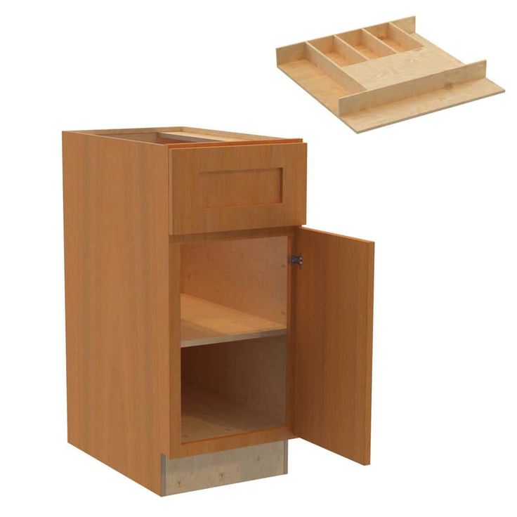 Home Decorators Collection Newport 15 in. W x 24 in. D x 34.5 in. H Assembled Plywood Base Kitchen Cabinet in Cinnamon with Cutlery Soft Close RH