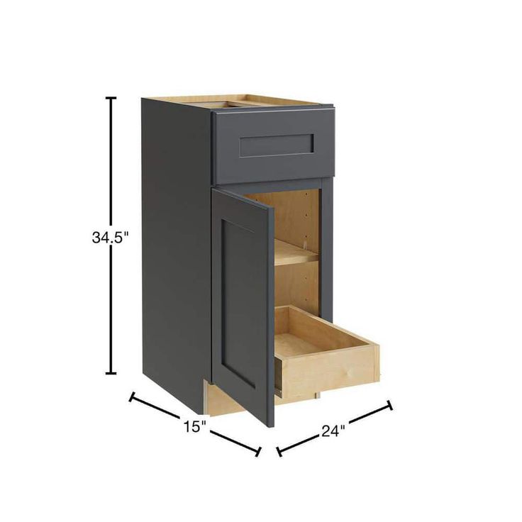 Home Decorators Collection Newport 15 in. W x 24 in. D x 34.5 in. H Assembled Plywood Base Kitchen Cabinet in Deep Onyx with 1ROT Soft Close LH