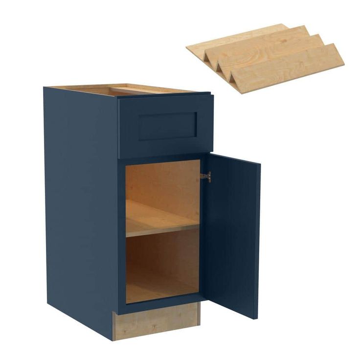 Home Decorators Collection Newport 15 in. W x 24 in. D x 34.5 in. H Assembled Plywood Base Kitchen Cabinet in Mythic Blue with Spice Soft Close LH