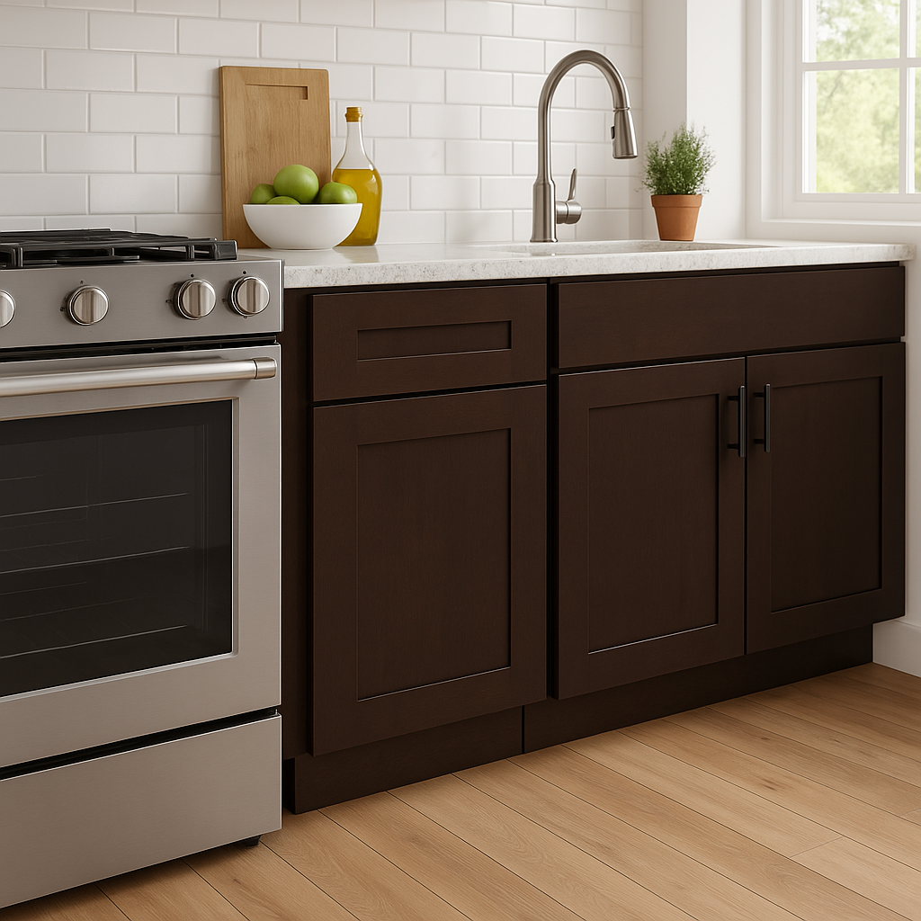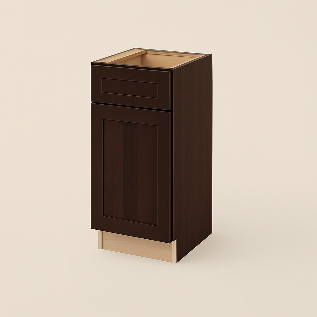 The Newport Base Kitchen Cabinet combines modern design with Shaker-inspired details, featuring solid hardwood doors with a Manganite glaze, all-plywood construction, and soft-close mechanisms for effortless functionality.