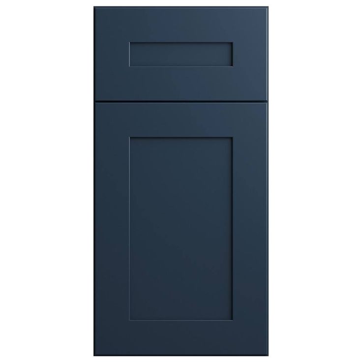 • Design: Classic shaker-style doors with a bold mythic blue finish