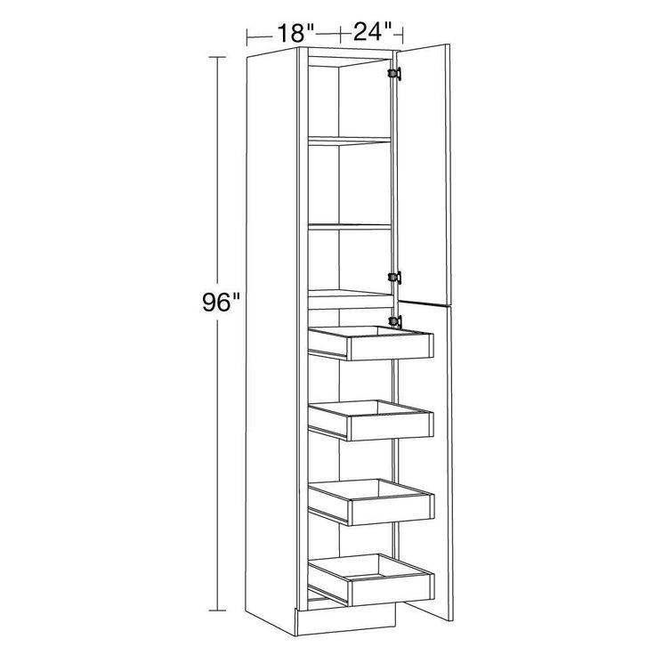 A: Each roll-out tray is designed to fit within the pantry's width and depth while maximizing storage and accessibility.
