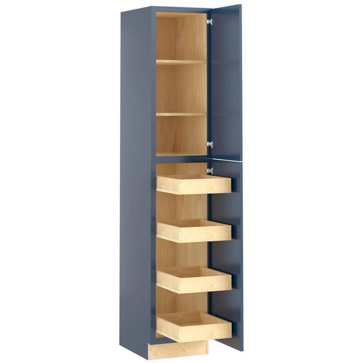 Elevate your kitchen design with the Newport 96-inch pantry cabinet in a stunning mythic blue finish. Featuring Shaker-style doors and full soft-close technology, this cabinet combines functional elegance with everyday durability. Crafted from solid MDF and high-quality plywood, it offers ample storage with adjustable shelving and roll-out trays.
