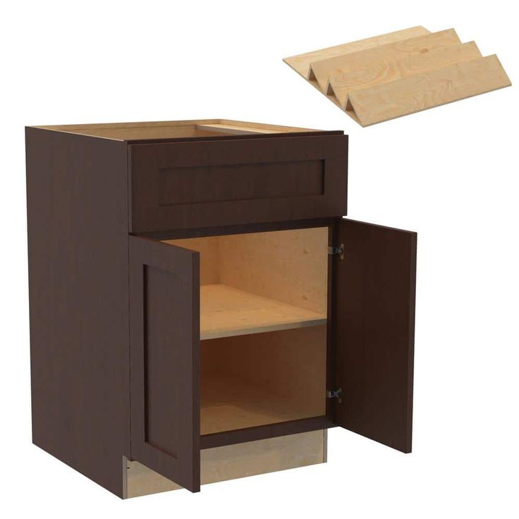 A: The cabinet features all-plywood construction for increased strength, with solid hardwood used for the doors and drawer fronts.