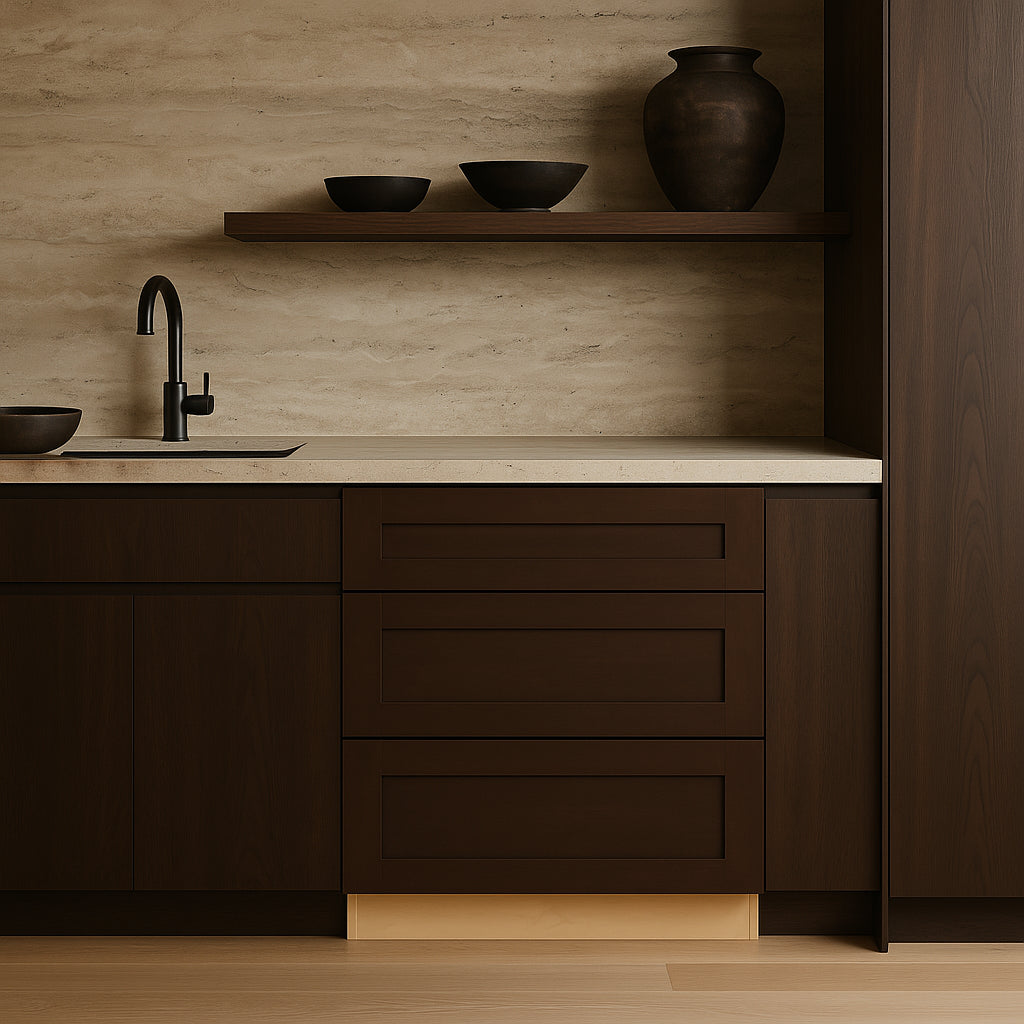 The Newport Base Cabinet in Manganite combines durable all-plywood construction with a sleek Shaker-style design. Featuring soft-close doors and drawers, adjustable shelves, and a rich manganite finish, this cabinet is perfect for modern kitchen renovations.