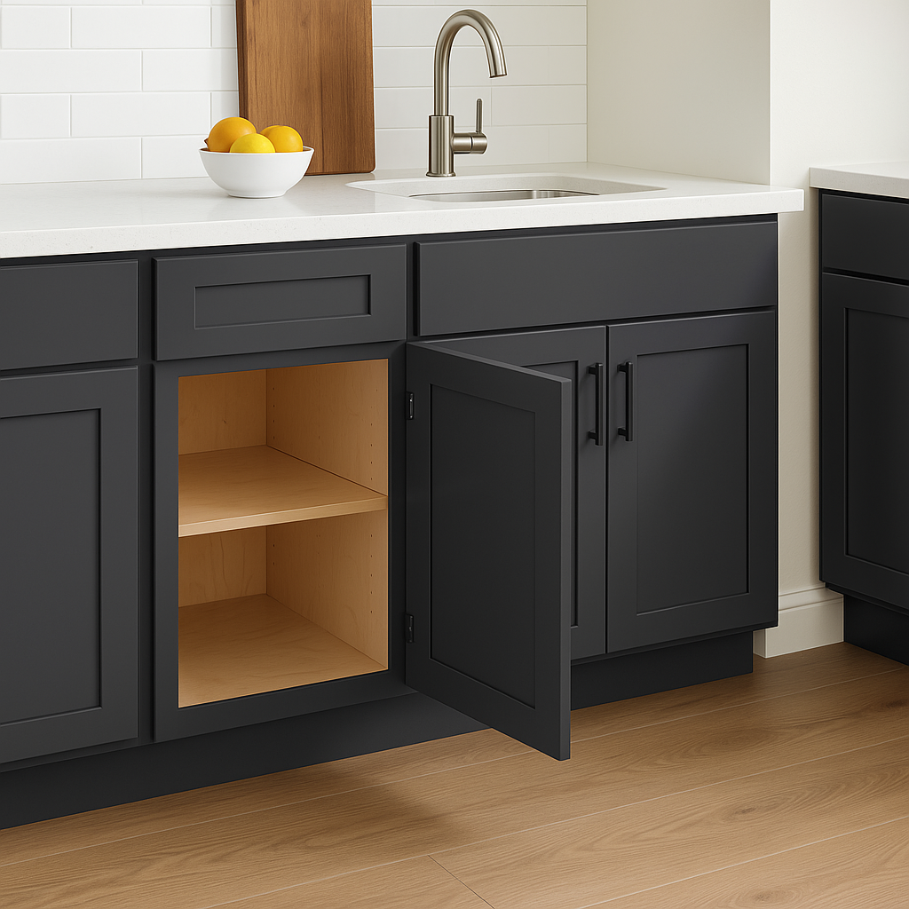 The Washington Base Cabinet by Home Decorators Collection combines modern elegance with practical functionality. Featuring a durable all-plywood construction and a striking valiant onyx finish, this cabinet is designed to enhance any kitchen space. Its soft-close doors and adjustable shelves offer convenience and customization.