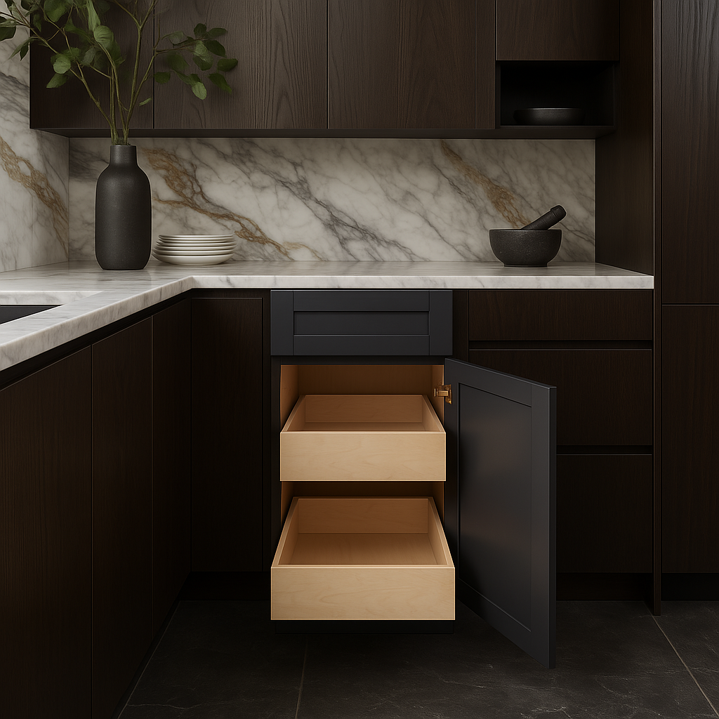 Transform your kitchen with our elegant Onyx cabinet—order today and experience both sophistication and functionality.