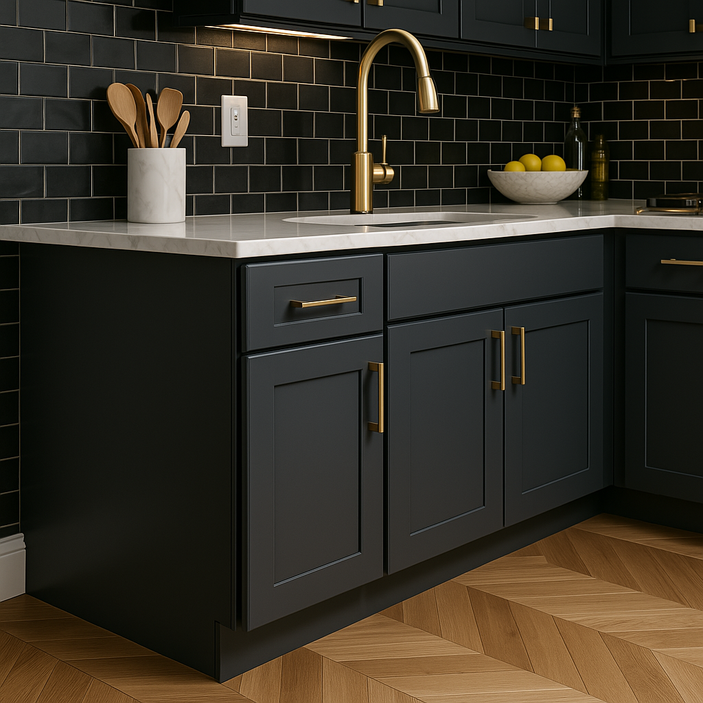 The Onyx Kitchen Cabinet by Home Decorators Collection combines bold aesthetics with practical utility. Featuring a Valiant Onyx finish, all-plywood construction, and soft-close doors, it offers durability and style for modern kitchens.