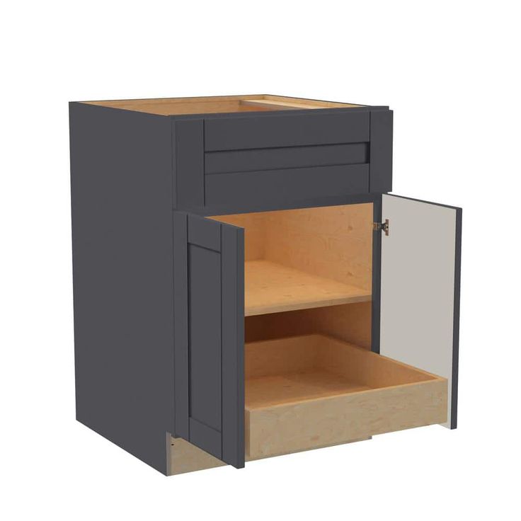 The Home Decorators Collection Washington Cabinet is a blend of functionality and style with its onyx-colored finish, soft-close doors, and robust plywood construction. Its sleek Shaker design adds modern elegance, making it a sophisticated centerpiece for any kitchen.