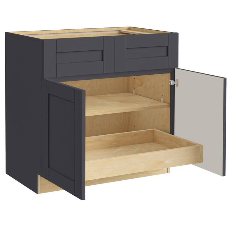 The Home Decorators Collection Onyx Kitchen Cabinet is a modern, sleek centerpiece featuring full plywood construction and soft-close doors. Its valiant onyx Rigid Thermofoil finish resists scuffs, making it ideal for busy kitchens, while concealed hinges and a shaker-style frame ensure both functionality and sophistication.