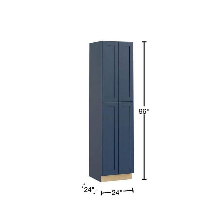 Home Decorators Collection Washington Vessel Blue Plywood Shaker Assembled Utility Pantry Kitchen Cabinet Soft Close 24 in W x 24 in D x 96 in H
