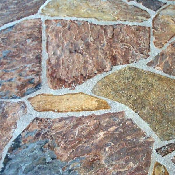 A: The flagstone can be installed directly on sand or decomposed granite for pathways or set on a concrete subbase using mortar and grout for patios and pools.