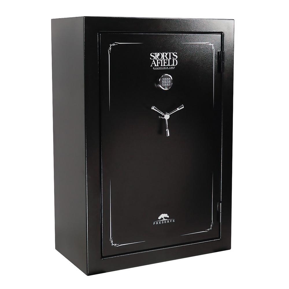 The Sports Afield Preserve Series SA5940P gun safe allows you to secure up to 40 long guns and 8 handguns, ammunition and valuables. The configurable interior is easily adaptable for all type of valuables and the delux door organizer maximizes storage. Our exclusive Zero-Sag, steel reinforced top shelf adds to the safes flexibility, allowing even heavier items to be stored at eye level. The electronic lock with Easy Touch keypad is programmable, allowing for ease of access. Our proprietary Triple Seal technology protects from smoke, fire and water. Backed by a lifetime, no hassle warranty. California DOJ Approved.