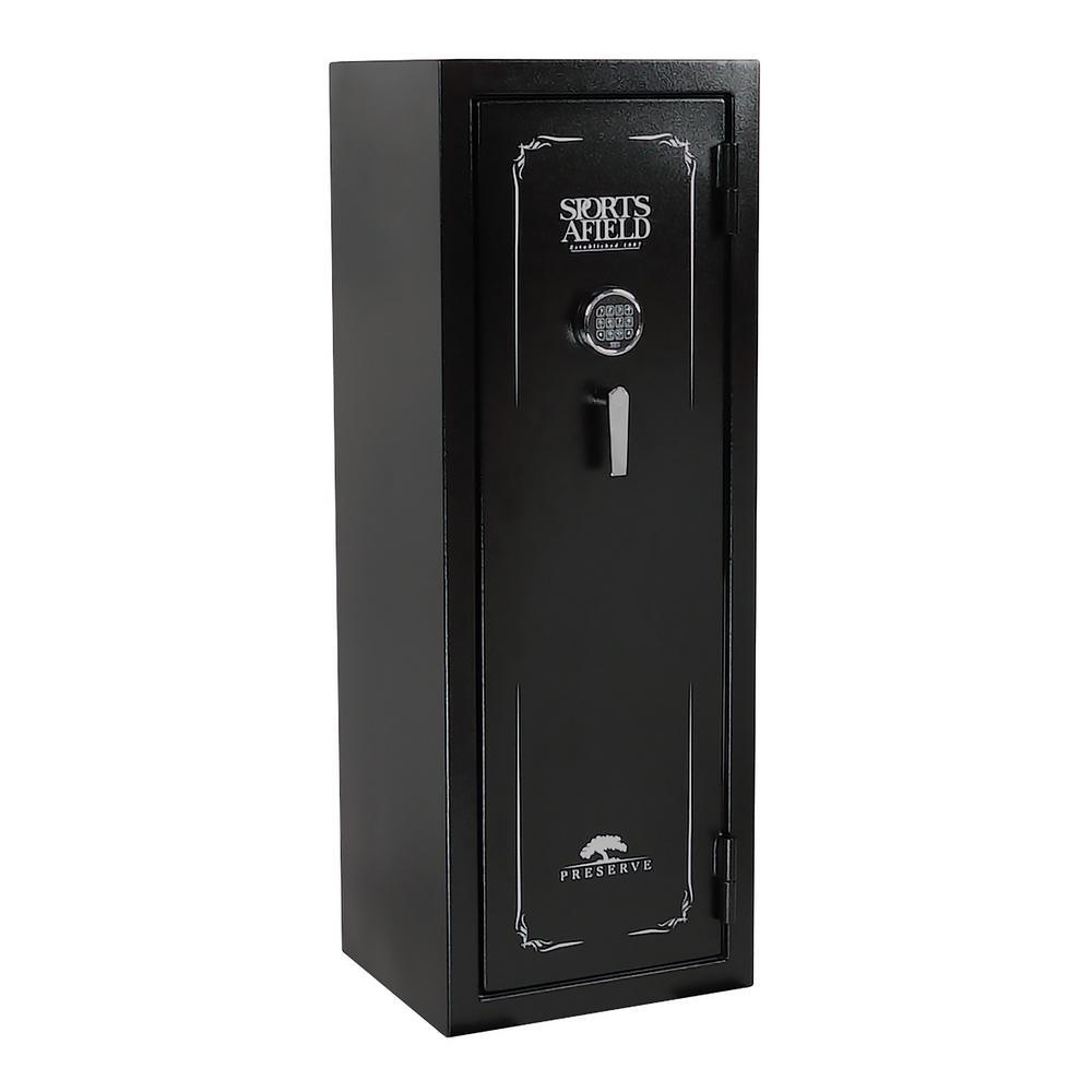 The Sports Afield Preserve Series SA5520P gun safe allows you to secure up to 18 long guns and 4 handguns, ammunition, and valuables. The configurable interior is easily adaptable for all type of valuables, and the door organizer maximizes storage. Our exclusive Zero-Sag, steel reinforced top shelf adds to the safes flexibility, allowing even heavier items to be stored at eye level. The electronic lock with Easy Touch keypad is programmable, allowing for ease of access. Our proprietary Triple Seal technology protects from smoke, fire and water. Backed by a lifetime, no hassle warranty. California DOJ Approved.