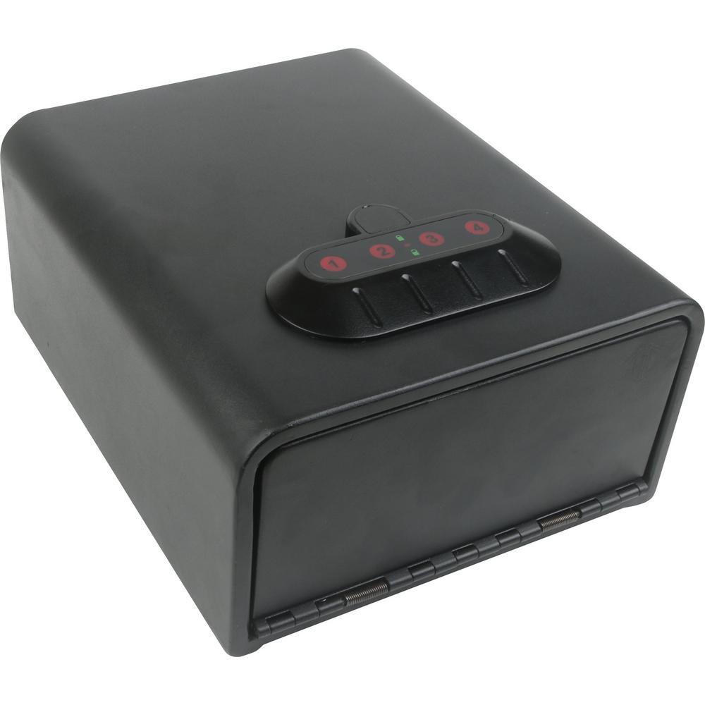 The Sports Afield Home Defense Quick Access Vault SA-HD2 allows quick front access with a programmable electric lock and spring loaded door. Lighted touch pad and interior illumination for quick and sure access in the darkest and most time sensitive situations. A tamper indicator lets you know if someone tried to access the vault. Backed by a 3-year, no hassle warranty. California DOJ Approved.