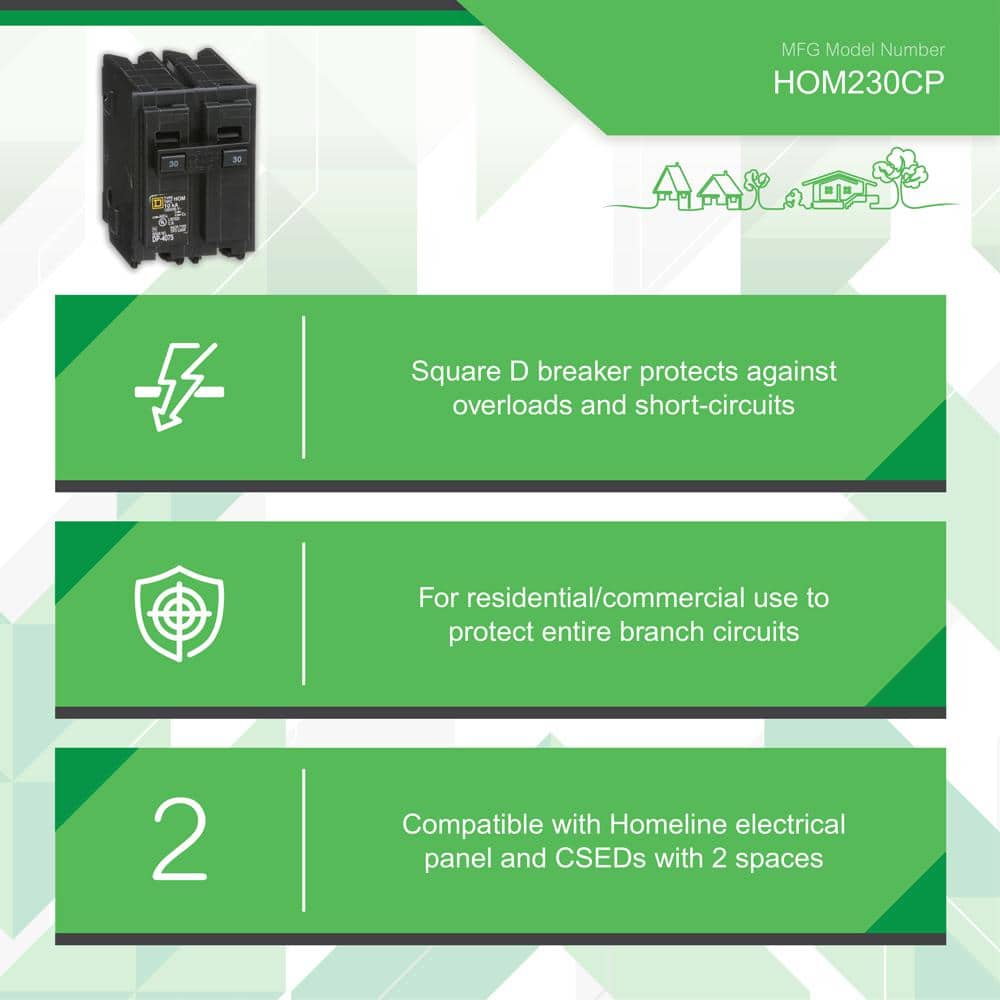 Square D Homeline 30 Amp 2-Pole Circuit Breaker(HOM230CP)