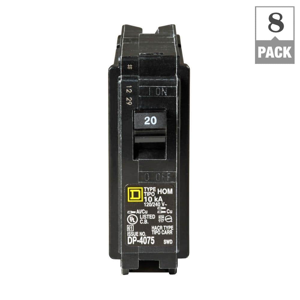 Ensure reliable protection for your residential electrical system with the Square D Homeline 20 Amp Single-Pole Circuit Breaker 8-Pack. Engineered for safety and easy installation, these breakers guard against overloads and short circuits, ensuring long-lasting performance in Homeline load centers.