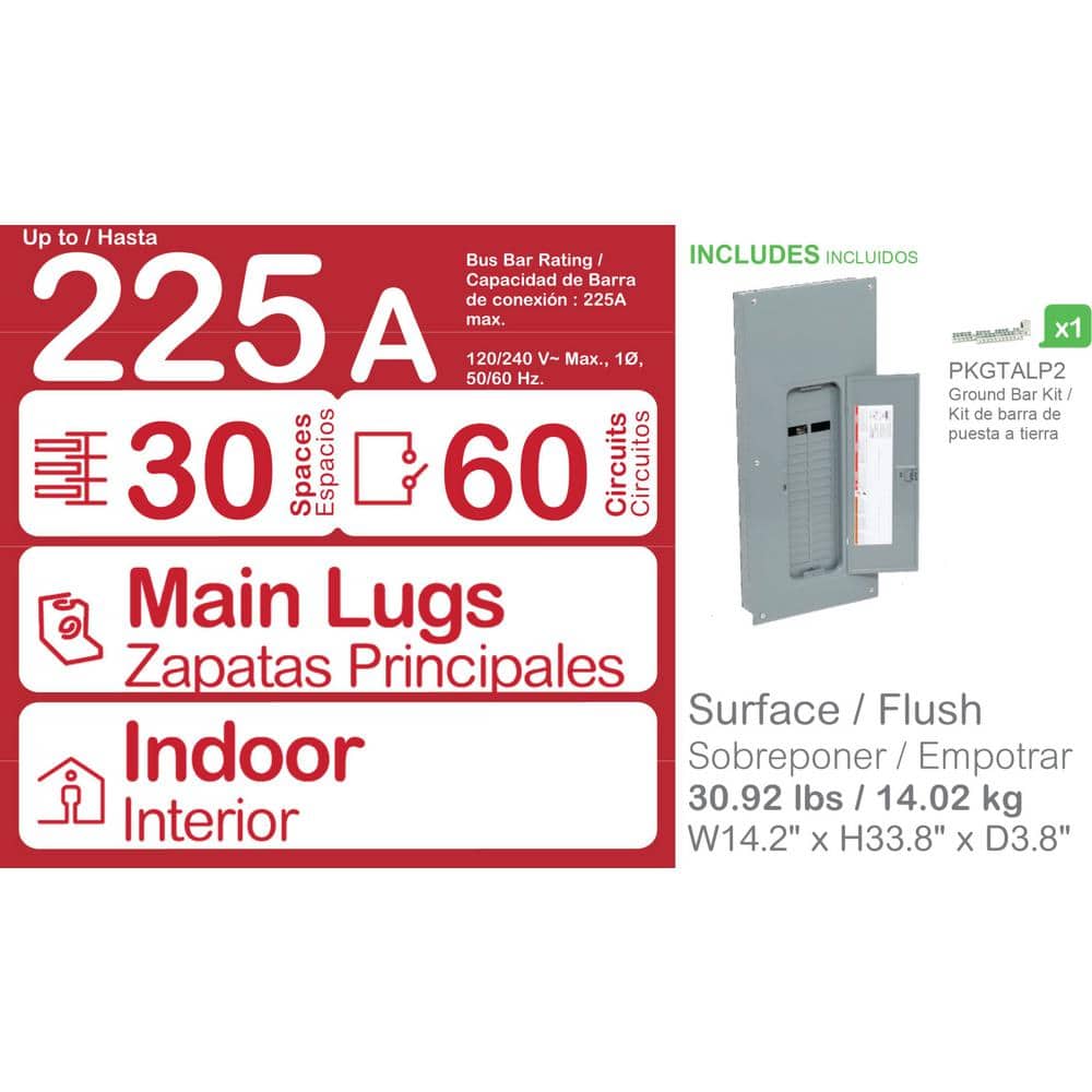 Square D Homeline 225 Amp 30-Space 60-Circuit Indoor Convertible Main Lugs Load Center with Cover