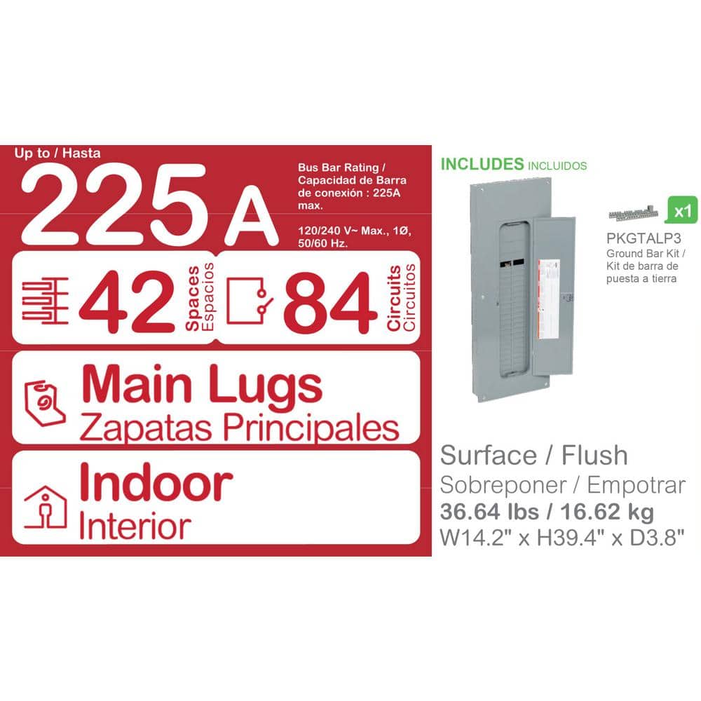 - Versatile Configuration: Converts from main lugs to a main breaker load center with additional parts.