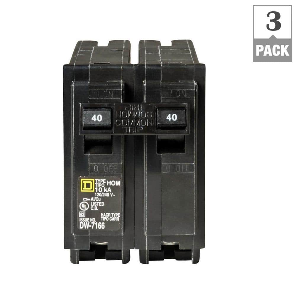 Square D Homeline 40 Amp 2-Pole Circuit Breaker (3-Pack)