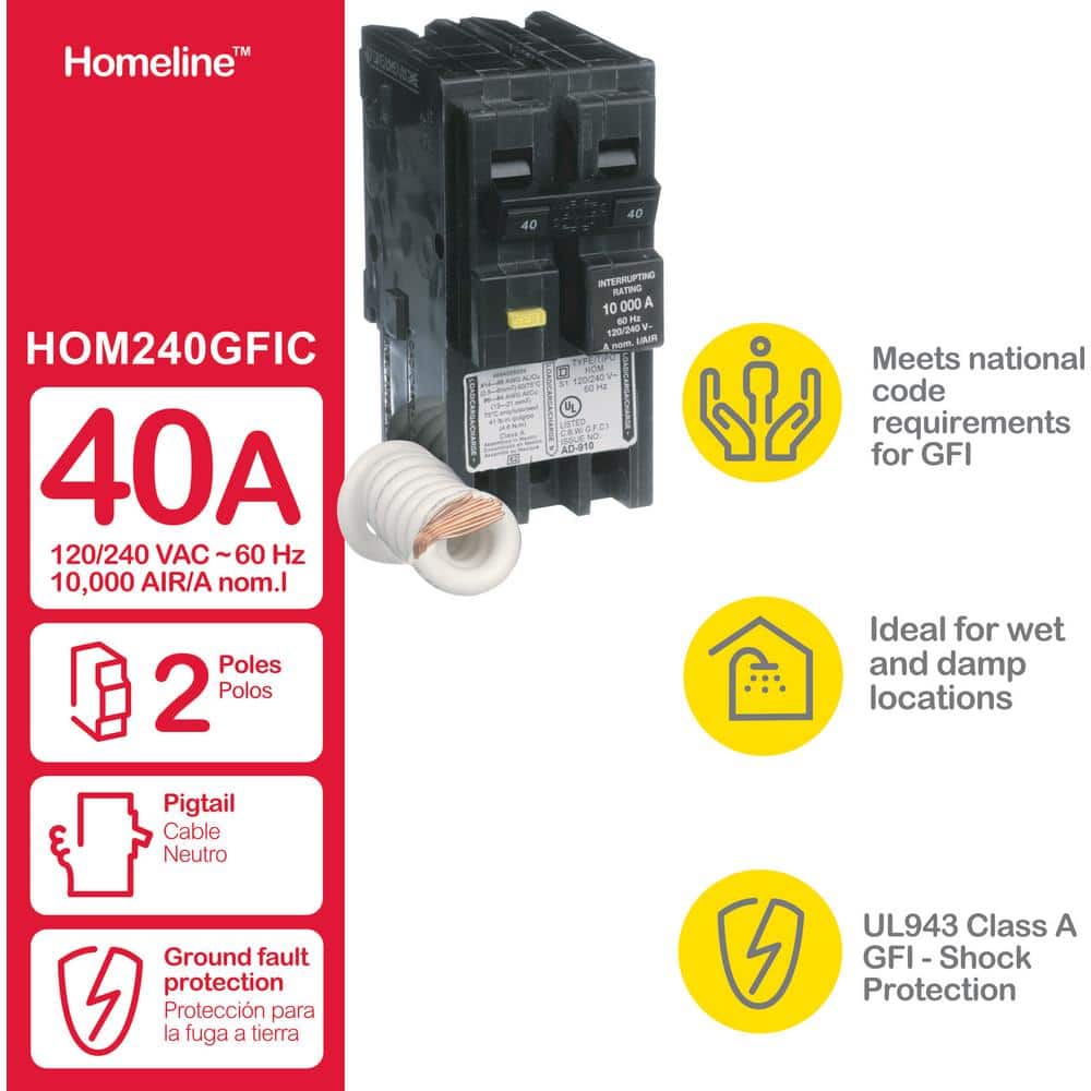Square D Homeline 40 Amp 2-Pole GFCI Circuit Breaker