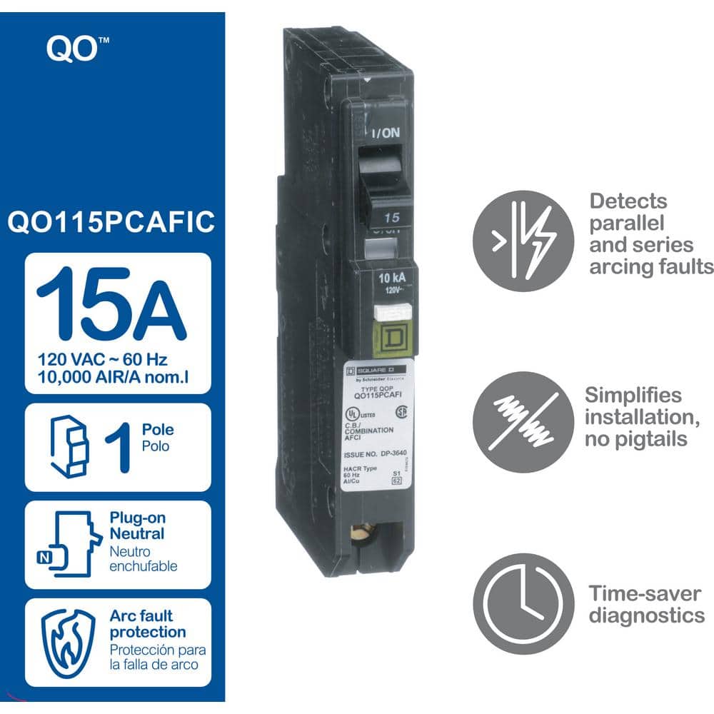 Square D QO 15 Amp Single-Pole Plug-On Neutral Combination Arc Fault Circuit Breaker