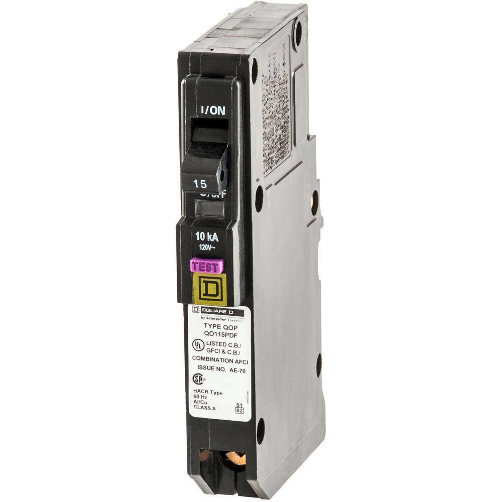 Ensure safety and compliance with the Square D QO 15 Amp Single-Pole Dual Function Circuit Breaker. This innovative breaker combines the crucial protection of both Arc Fault (CAFCI) and Ground Fault (GFCI) technologies in one compact, easy-to-install unit. Perfect for residential and light commercial installations, this 9-pack offers reliable protection while reducing installation time and complexity.