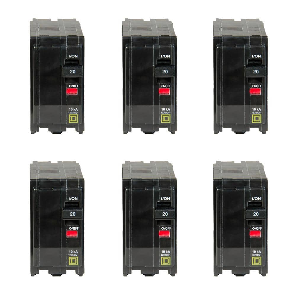 Square D QO 20 Amp 2-Pole Circuit Breaker (6-pack)