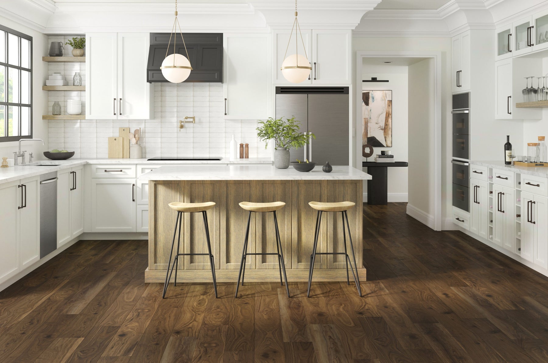 Highland Walnut sweeps a room in deep, velvety tones that instantly ground the space with elegance. Its authentic grain and low-gloss finish create a refined, lived-in luxury perfect for modern kitchens and serene living rooms. Pair with creamy cabinetry and brushed brass accents to let the wood’s movement sing. It’s a sophisticated foundation that elevates everyday living with resilient ease.