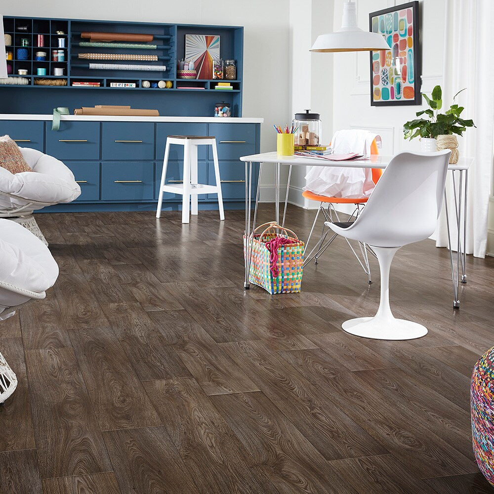Get a hands-on look at Thornhill Oak before you buy. This waterproof, glue-down sheet vinyl sample showcases a realistic wood grain in rich brown tones with a protective wear layer for everyday durability.