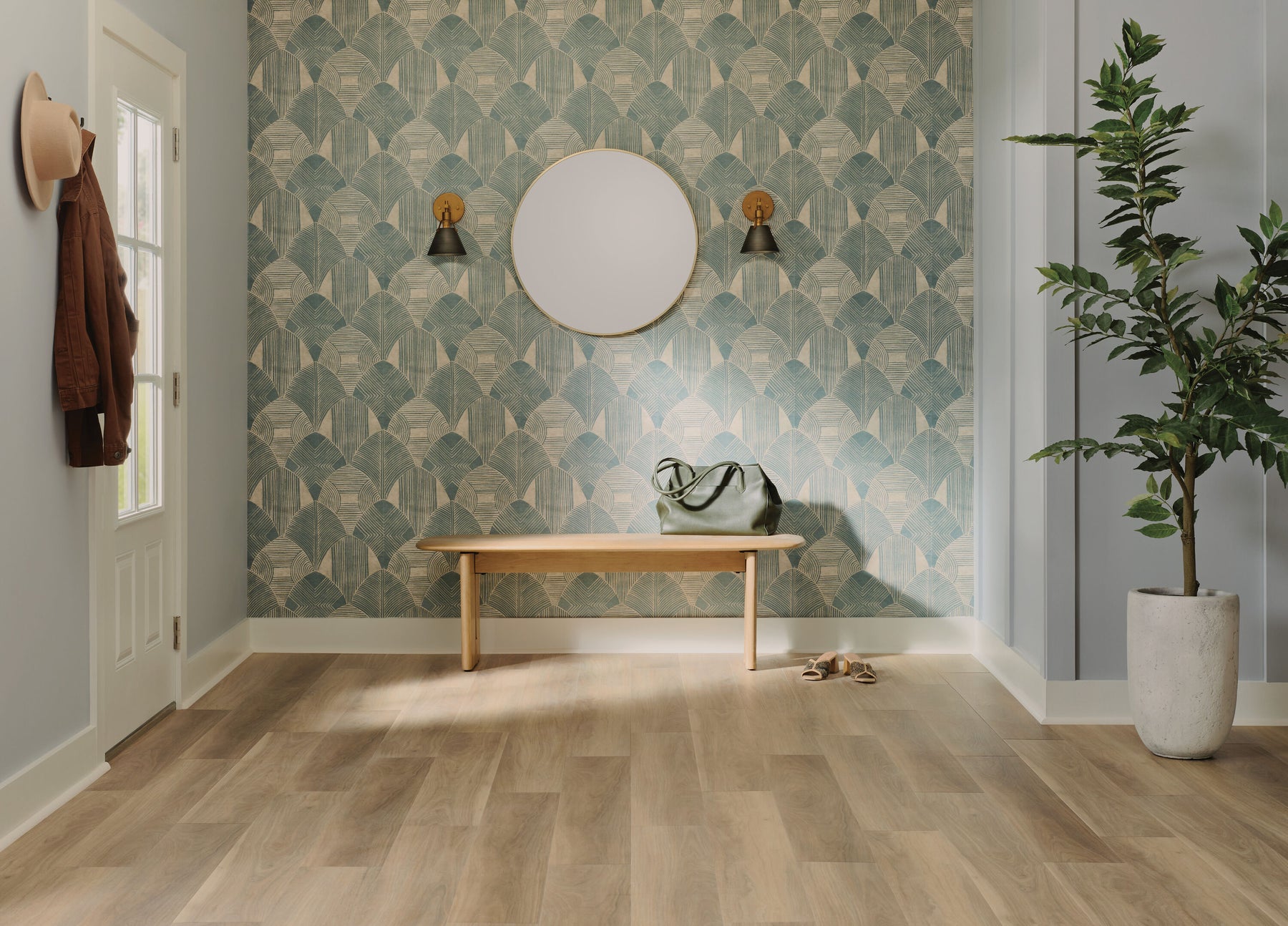 Yorktown Walnut brings a soft, sun-washed warmth that instantly calms and elevates any room. The elegant grain, captured with EIR realism, pairs beautifully with airy palettes and sculptural accents. Lay it through entryways and open living spaces to unify the home with effortless sophistication. Its resilient, waterproof design makes it a luxurious essential for stylish households with pets.