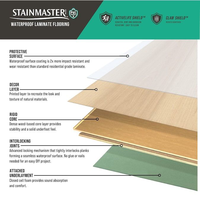 Upgrade your floors with STAINMASTER's Mountain Laurel Maple 12-mm Waterproof Laminate Flooring, designed to withstand the demands of busy households and active pets. Featuring a stunning array of golden brown tones and a realistic wood grain texture, this flooring combines style and durability with enhanced scratch, dent, and stain resistance.