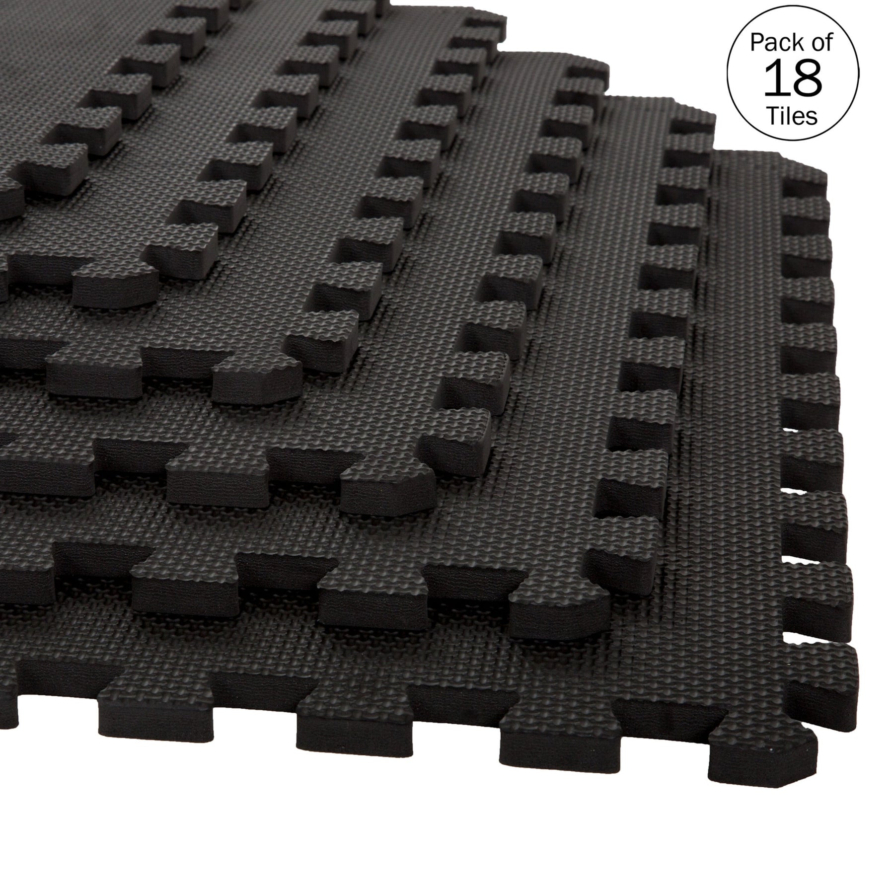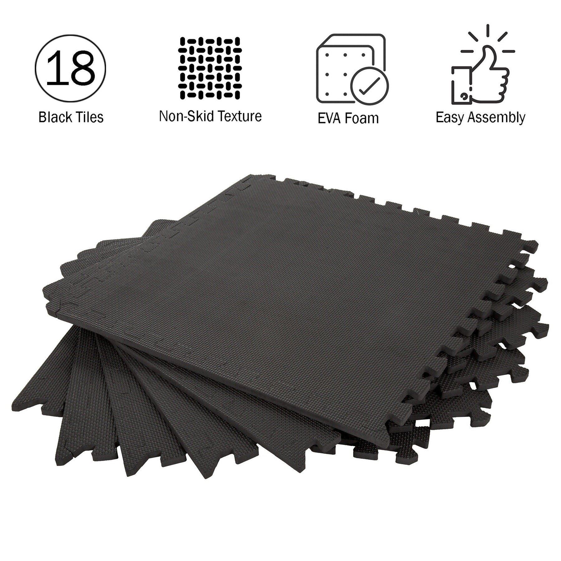 Transform your workout space or play area with the durable and versatile Stalwart Interlocking Foam Gym Floor Tile Set. This 72-square foot coverage set features 18 black foam tiles that combine non-toxic materials and a slip-resistant surface, making it safe and comfortable for a variety of activities. Easy to install and maintain, these foam tiles are ideal for high-traffic areas in both commercial and residential settings.