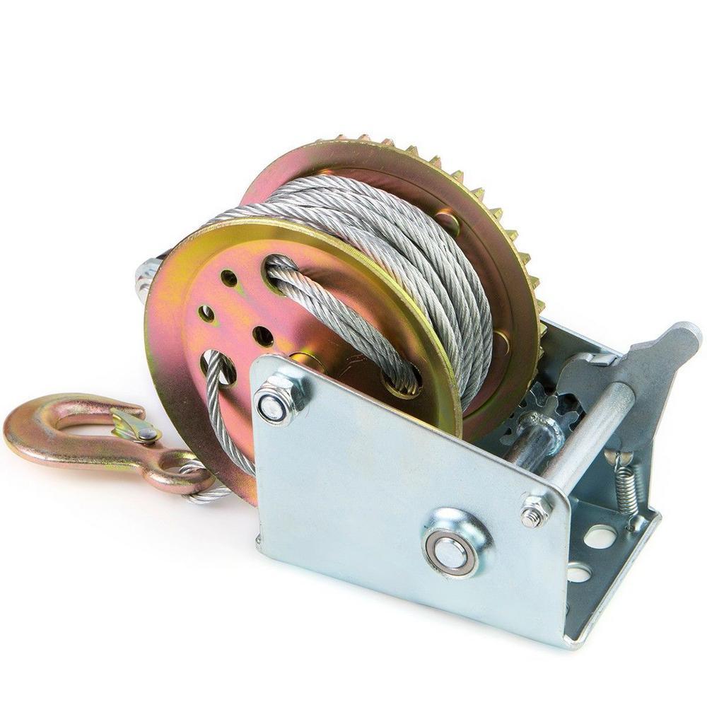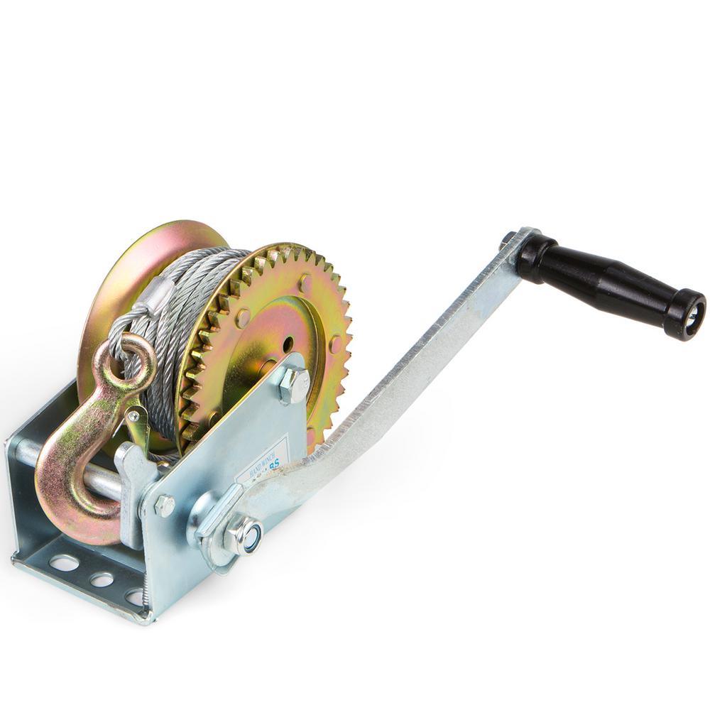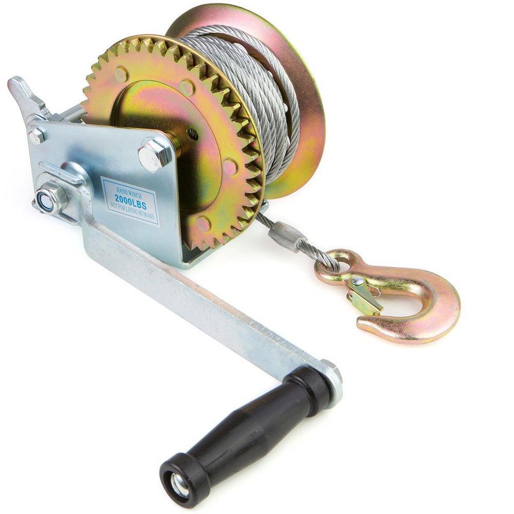 The 2000 lbs. capacity Worm Gear Hand Winch is easy-to-mount and ideal for mobile use on pickup trucks and trailers. The worm gear winch features steel towing cable and a smooth-action worm gear drive to keep a firm hold on items in tow. Ideal for pulling trailers, boats, water vehicles, ATVs, RVs, construction and lawn equipment.