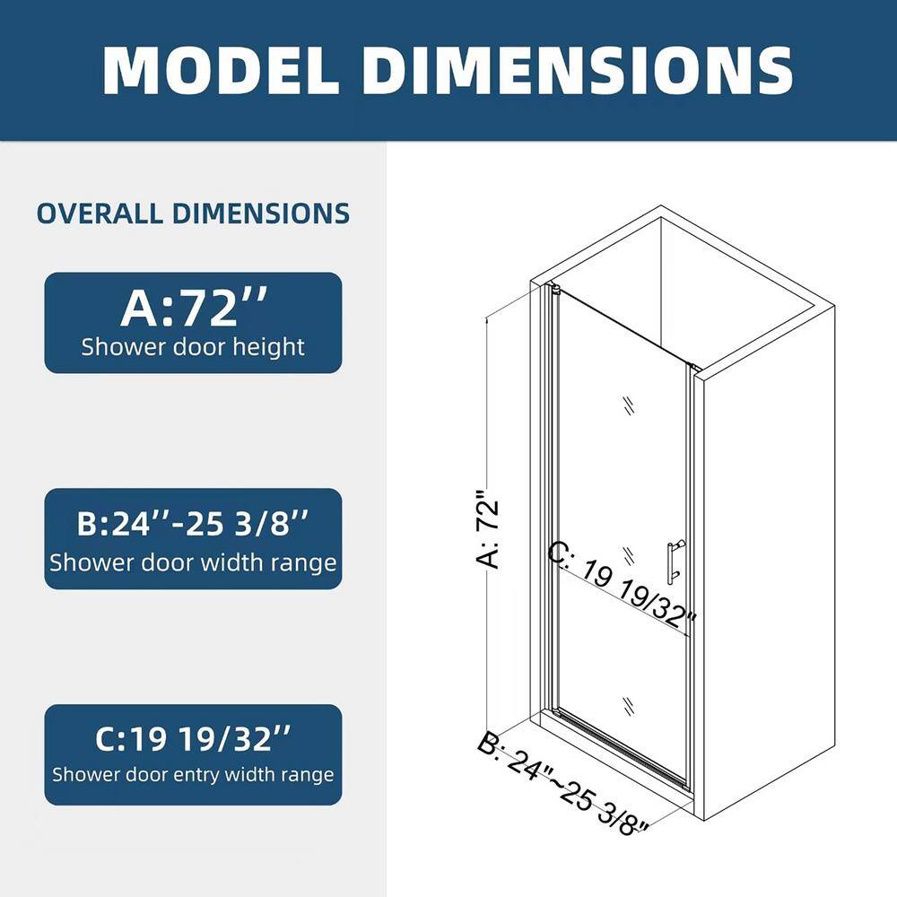 Staykiwi 24 to 25.37 in. W x 72 in. H Semi Frameless Pivot Shower Door in Chrome Finish with Clear Tempered Glass