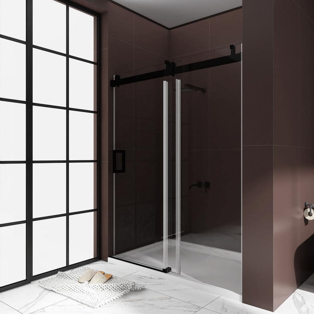 Transform your bathroom into a sleek oasis with the Staykiwi 60 in. W x 76 in. H Single Sliding Frameless Shower Door. Featuring a matte black finish and premium stainless steel hardware, this shower door combines modern elegance with durability. Engineered for quiet, soft-close operation, it is an essential component of any contemporary bathroom.